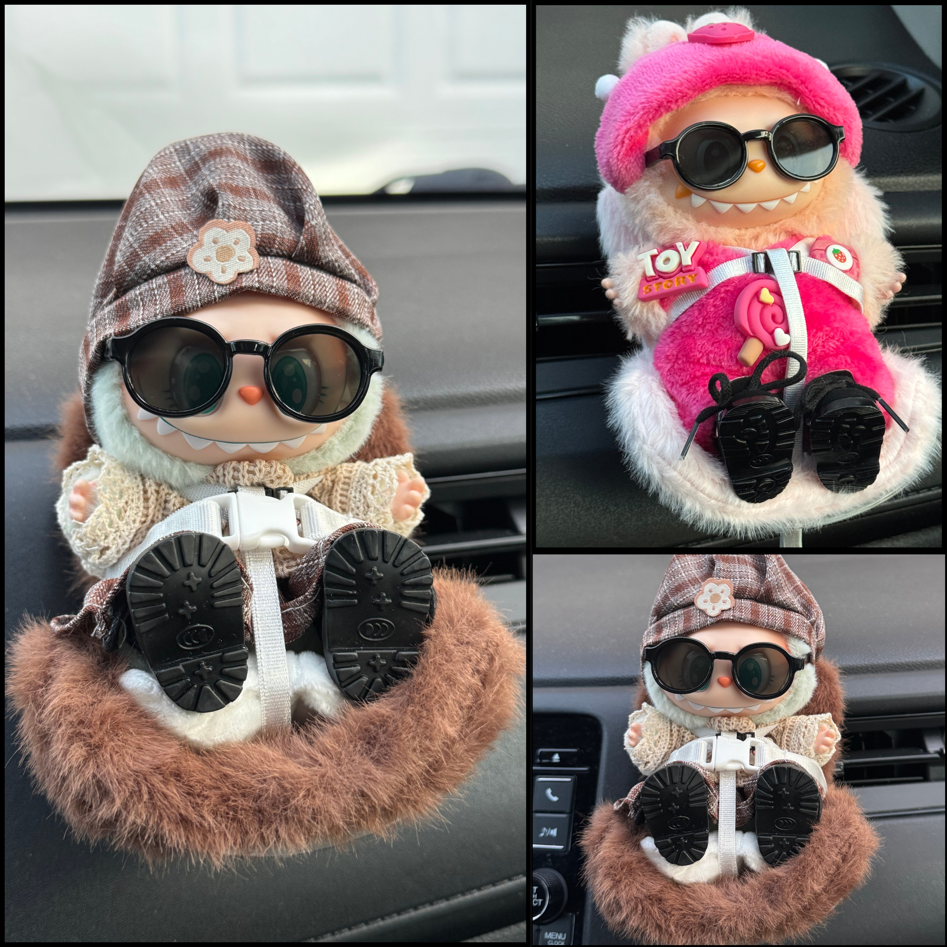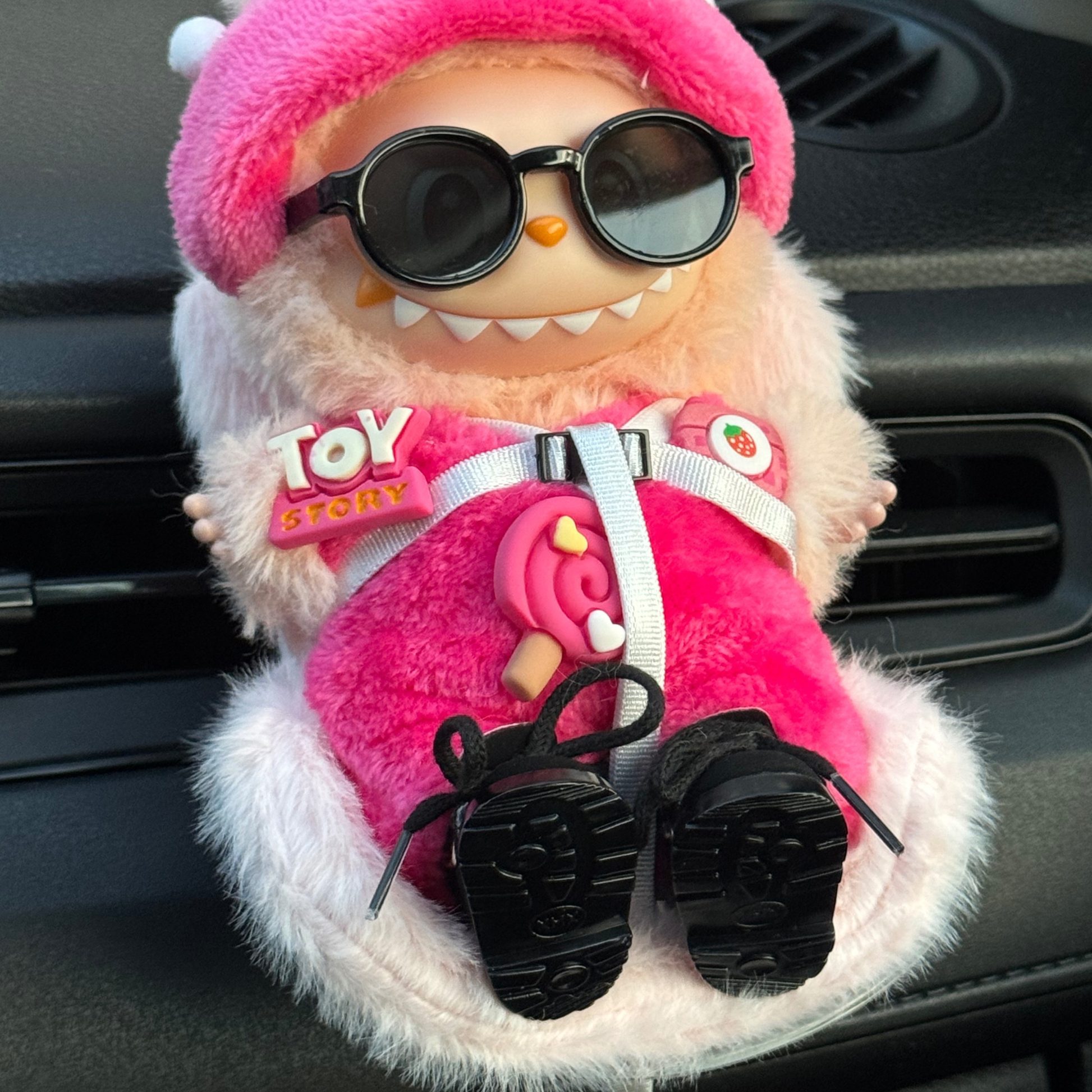 Adorable display car seat to bring your favorite plush doll, ideal for Labubu dolls for V1, V2 and V3 only.