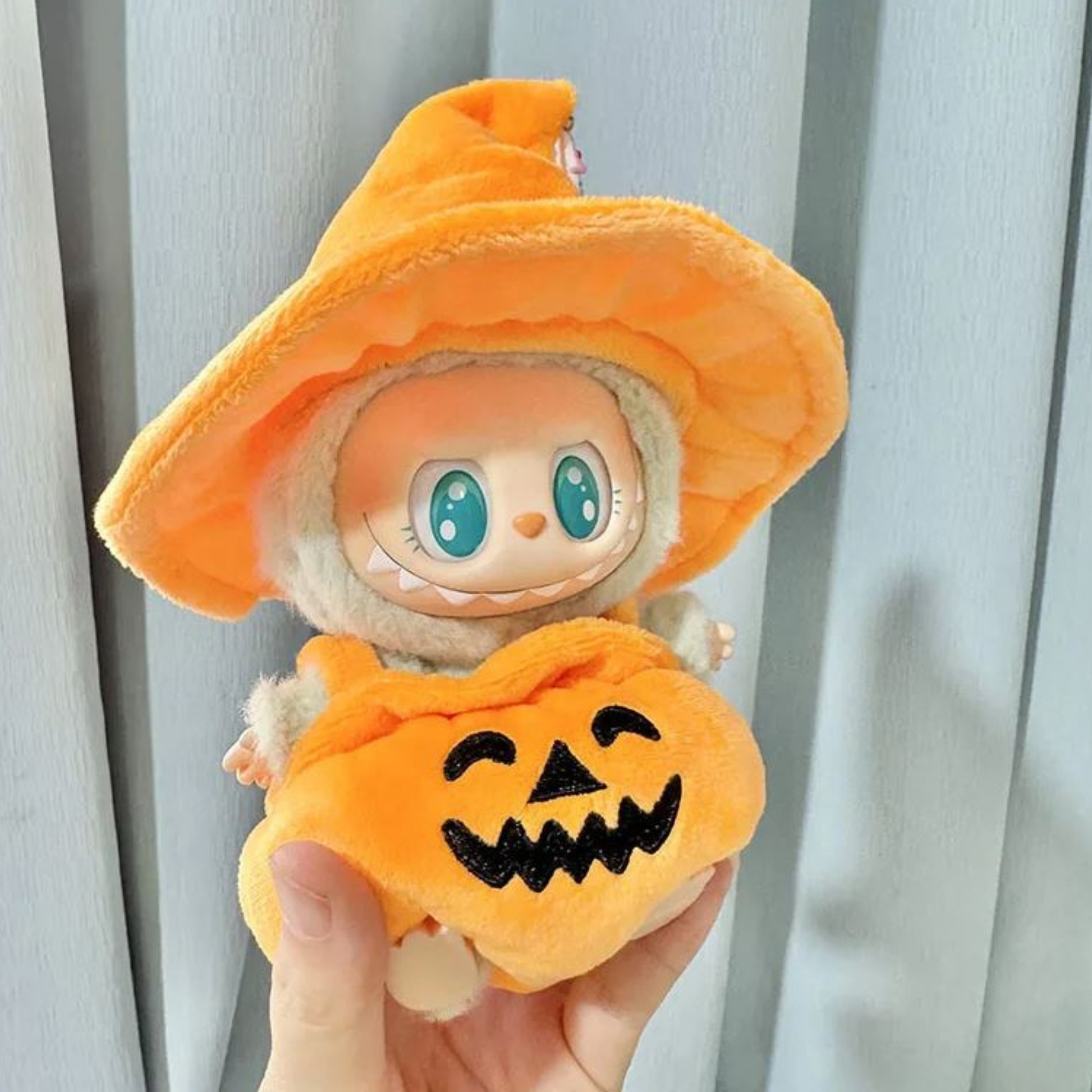 Cute Pumpkin Labubu outfit, fits Standing and Sitting Labubu dolls 15/17cm - perfect to give your Labubu a spooky style.